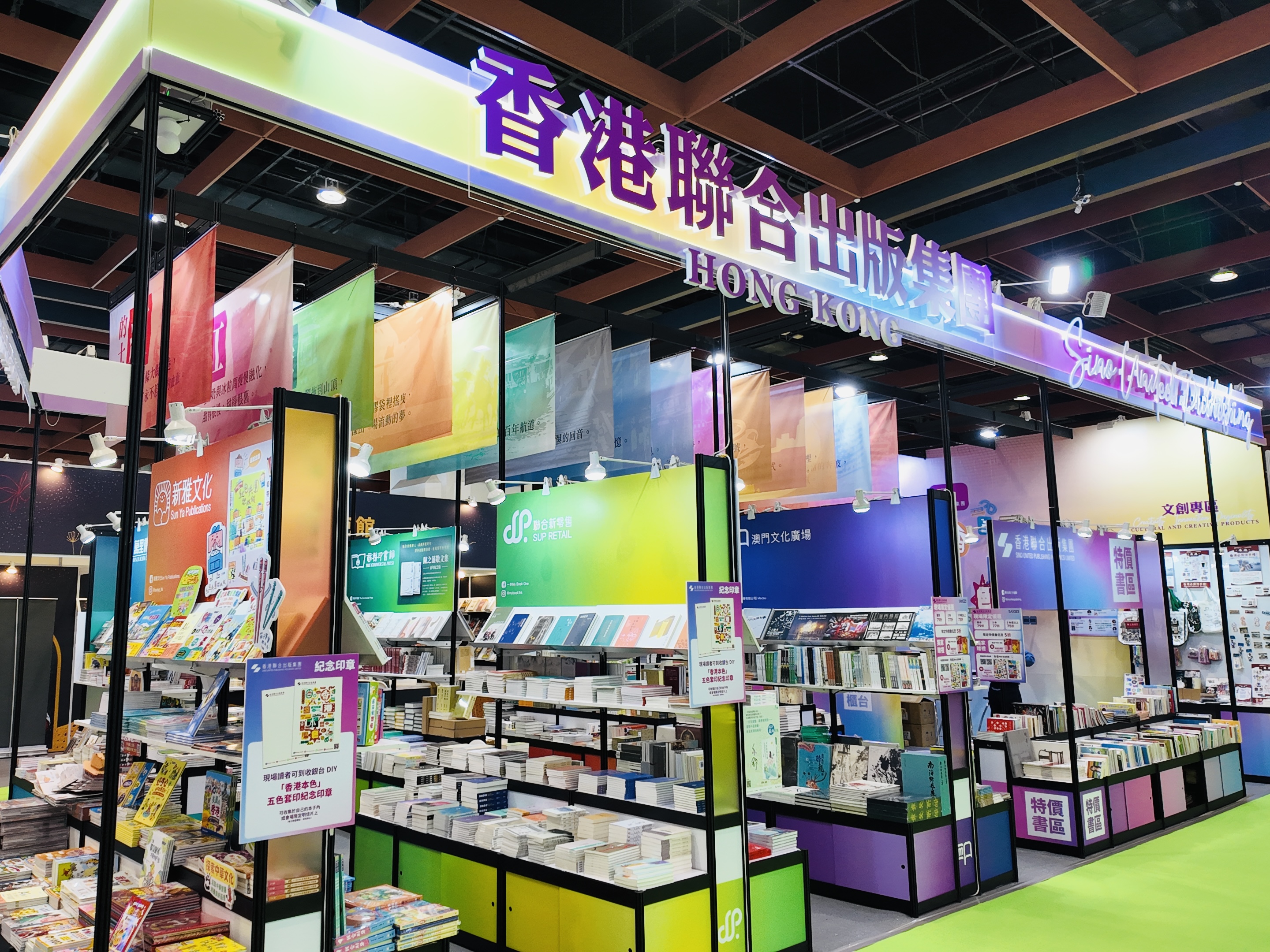 聯合出版集團以「香港本色」為主題參加是次台北書展。展位設計由香港青年設計師操刀,捕捉香港的不同色彩,提煉城市肌理中最具代表性的色彩作為設計元素。通過色彩、線條與光影,營造別具一格的香港印象。展位更精心打造香港元素沉浸式打卡區,色彩生動、設計巧妙,吸引眾多讀者到訪,看書之餘也拍下人生照片!